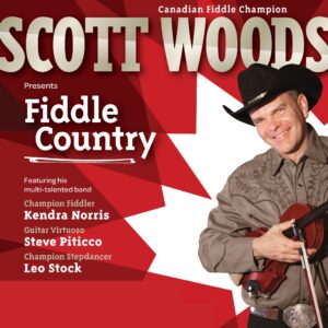 Get ready for a toe-tapping, heartwarming experience with Scott Woods and his talented band! “Fiddle Country” is a brand new high-energy show that brings the best of Classic Country and Fiddle music to life! Featuring an unforgettable blend of Canadian Old Time Fiddling, Bluegrass, Western Swing, and Country Gospel, this live performance is packed with real music, real instruments (piano, drums, guitars and multiple fiddles), and loads of family-friendly fun. Add in some trick fiddling, amazing step dancing, a touch of Canadiana charm and plenty of humour, and you’ve got a show that you won’t forget! This band will keep you entertained for the whole two hours. Scott’s keen wit will keep you laughing, and his prowess on the fiddle will amaze you. Of course, Scott will do some of his trick fiddling as well! Enjoy impressive guitar solos by ‘The Telecaster Master’ Steve Piticco, and 21-year old Leo Stock, (also known as ‘Spaghetti Legs’) will demonstrate sensational step dancing. Scott’s sister, Kendra Woods Norris, adds sweet harmonies and levity to every show. Get your tickets for “Fiddle Country” now!